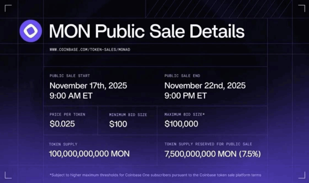 The token sale will run for a period of 1 week, starting from November 17, 2025, to November 22, 2025. It will be followed by Monad’s mainnet launch on November 24, 2025.
